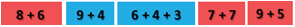 Красным цветом закрась карточки, на которых записаны примеры с ответом 14, а синим — с ответом 13.