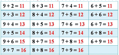 Ты можешь пользоваться таблицей сложения чисел 11, 12, 13 и 14.