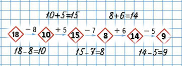 1 дес. 8 ед. - 8 ед. = 1 дес.
