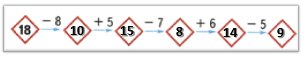5 + 7 = 12 9 + 4 = 13 12 - 4 = 8
