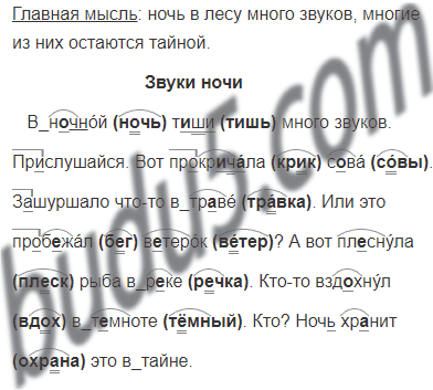 Образец записи: В_ночной (ночь) тиши (тишь) много звуков (звуковой).