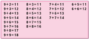 | 6 + 5 | 8 + 6 | 9 + 9 | 6 + 6 |