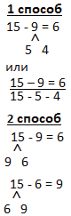 Саша представил число 15 в виде двух слагаемых: 10 и 5. Затем он из 10 вычел 9.