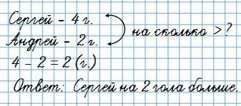 3. Андрей и Сергей решили испытать себя в качестве вратарей. Каждый из них пробил 10 мячей в ворота противника. Андрей отбил 6 мячей, а Сергей — 8. Сколько голов забил в ворота каждый мальчик? Кто из них забил больше голов и на сколько?