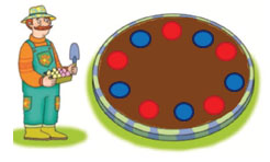 3)  Догадайся, какое условие в задаче надо из­менить, чтобы, не меняя чисел в условии, мож­но было получить ответ: садовник сможет выса­дить луковицы так, чтобы рядом были разные по названию цветы. (Подумай о форме клумбы.)