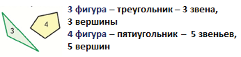 Фигура 6 - треугольник - У треугольника 3 звена и 3 вершины.