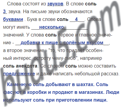 На основе этой информации составь и запиши текст из трёх предложений со словом соль.