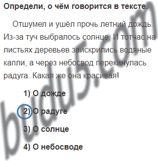 Отшумел и ушёл прочь летний дождь. Из-за туч выбралось солнце. И тотчас на листьях деревьев заискрились водяные капли, а через небосвод перекинулась радуга. Какая же она красивая!