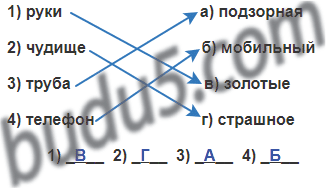 Подбери к названиям предметов названия признаков (проведи стрелки), затем укажи рядом с цифрой нужную букву.