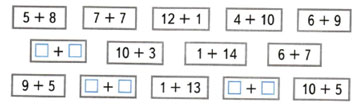 6 + 8 = 14 10 + 3 = 13   1 + 14 = 15 6 + 7 = 13