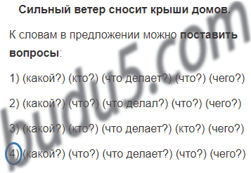 4) (какой?) (что?) (что делает?) (что?) (чего?)