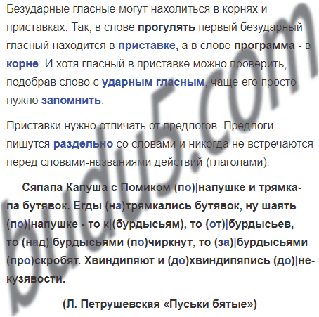 Безударные гласные могут нахолиться в корнях и приставках. Так, в слове прогулять первый безударный гласный находится в _____________