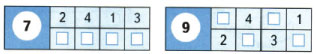 В пустую клеточку добавь число, которое нужно прибавить, чтобы получить 7 и 9.