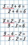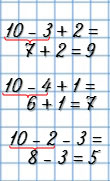 | 5 - 3 + 4 = | 10 - 3 + 2 = |