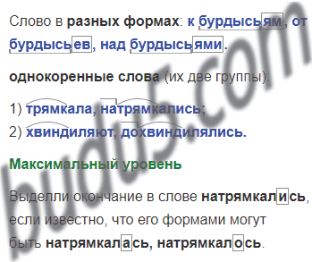 Вьшсли окончание в слове натрамкались, если известно, что его формами могут быть натрямкалась, натрямкалось.