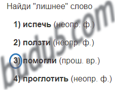 Лишним будет глагол в прошедшем времени, т.к. остальные стоят в неопределённой форме.