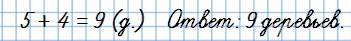 У школы растут 5 лип и 4 берёзы. Сколько всего ... ?