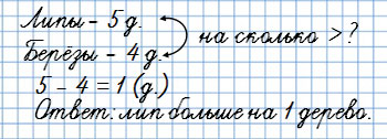 Задаю вопрос: На сколько больше лип, чем берёз?