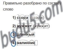 Обрати внимание, что из данных слов 2 слова разобраны верно, а не одно: