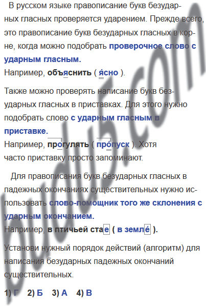 Установи нужный порядок действий (алгоритм) для написания безударных падежных окончаний существительных.