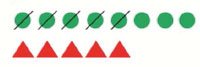 Сравниваем круги и треугольники. Треугольников больше, потому что остались незачеркнутые. Они без пары. Лишние. Значит, 8 > 5