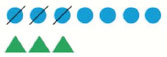 Сравниваем круги и треугольники. Кругов больше, потому что остались незачеркнутые. Они без пары. Лишние. Значит, 7 > 3