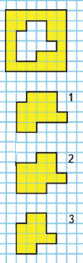 Фигура 1 - не подходит, потому что длина её верхней стороны 3 клеточки, а в вырезанной фигуре их всего 2.