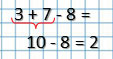 3 + 7 - 8 | 2 + 6 | 10 - 6 |