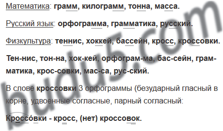 Теннис, грамм, килограмм, тонна, хоккей, орфограмма, бассейн, грамматика, кросс, кроссовки, масса, русский.