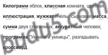 Слова для справок: иллюстрация, килограмм, тонна, кроссворд, программа, аккуратный, масса, жужжат, сумма, классная.
