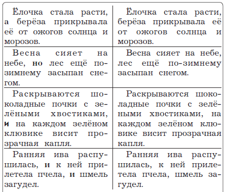 Работа в паре. Прочитайте предложения, взятые из рассказов М. Пришвина, и сравните их с предложениями в правой колонке. Какую разницу вы заметили? Понаблюдайте, как поставлены запятые в сложных предложениях.