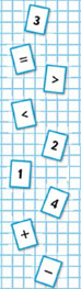 Возьми такие карточки и составь из них 3 верных равенства и 3 верных неравенства.