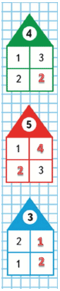 В окошки домов нужно вставить числа, в соответствии с числом на крыше домика.