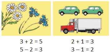 1) Девочки составляли букет. Они взяли 3 ромашки и 2 василька. Сколько всего цветков в букете?