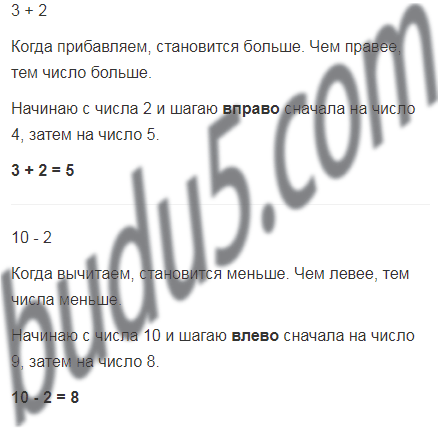 Когда прибавляем, становится больше. Чем правее, тем число больше.