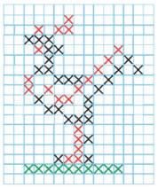 5. Нарисуй такого петушка в тетради по клеткам. Используй рисунок крестиком, как в вышивке.