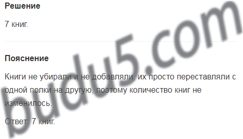 6. (Устно.) На двух полках, верхней и нижней, было 7 книг. С верхней полки переставили на нижнюю 3 книги. Сколько книг стало на этих двух полках?