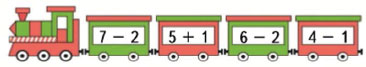 2) Возьми карточки с другими примерами и составь поезд из них.