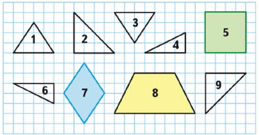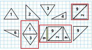 9. Выпиши номера фигур, из которых можно составить: фигуру 5; фигуру 7; фигуру 8.