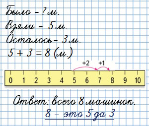 Когда Саша взял из игрушечного гаража 5 машинок, в нём осталось ещё 3. Сколько всего машинок в гараже у Саши?