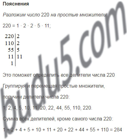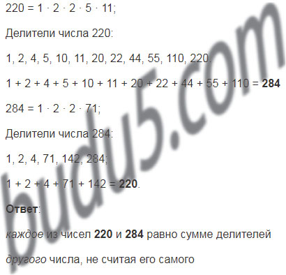 Проверьте, что каждое из чисел 220 и 284 равно сумме делителей другого числа, не считая его самого.