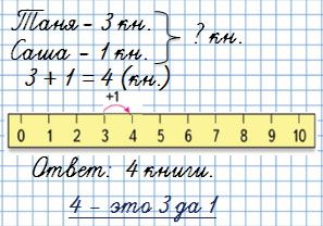 Рассмотри рисунок. Составь и реши задачу, в которой спрашивается, сколько всего книг взяли с полки.