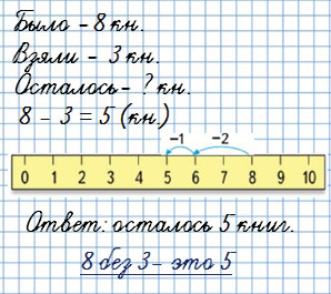 2. На полке было 8 книг. С полки взяли 3 книги. Сколько книг осталось?