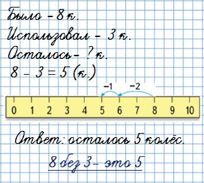 3. В конструкторе было 8 колёс. Юра сделал трёхколёсный велосипед. Сколько ещё колёс осталось в конструкторе?