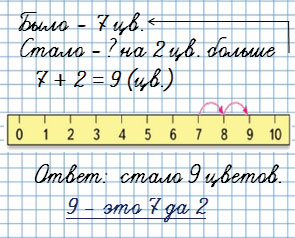 4. Вчера в вазе было 7 гвоздик. Сегодня цветов в вазе стало на 2 больше.