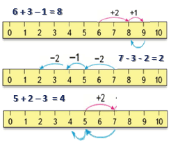 7 + 2 = 9 9 + 1 = 10 5 - 3 = 2 10 - 3 = 7