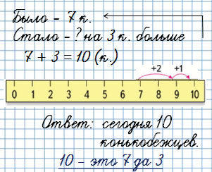31. Вчера в соревнованиях участвовали 7 конькобежцев, а сегодня участников стало на 3 больше. Сколько конькобежцев соревнуются сегодня?