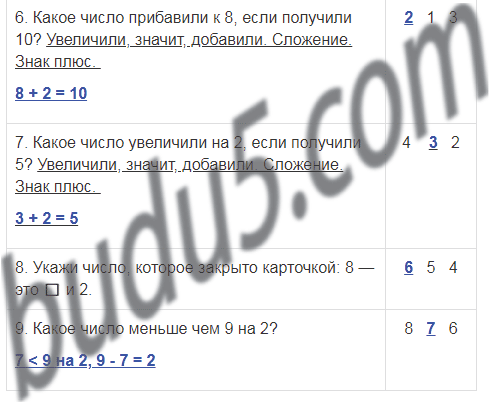 9. Какое число меньше чем 9 на 2? 8   7   6