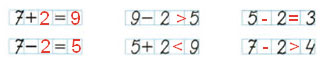 Составь и запиши верные равенства и верные неравенства, используя числа 7, 2, 5, 9 и знаки +, —, =, >, <.