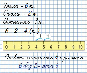 Составляю задачу: В вазе было 6 пряников. За обедом 2 пряника съели.